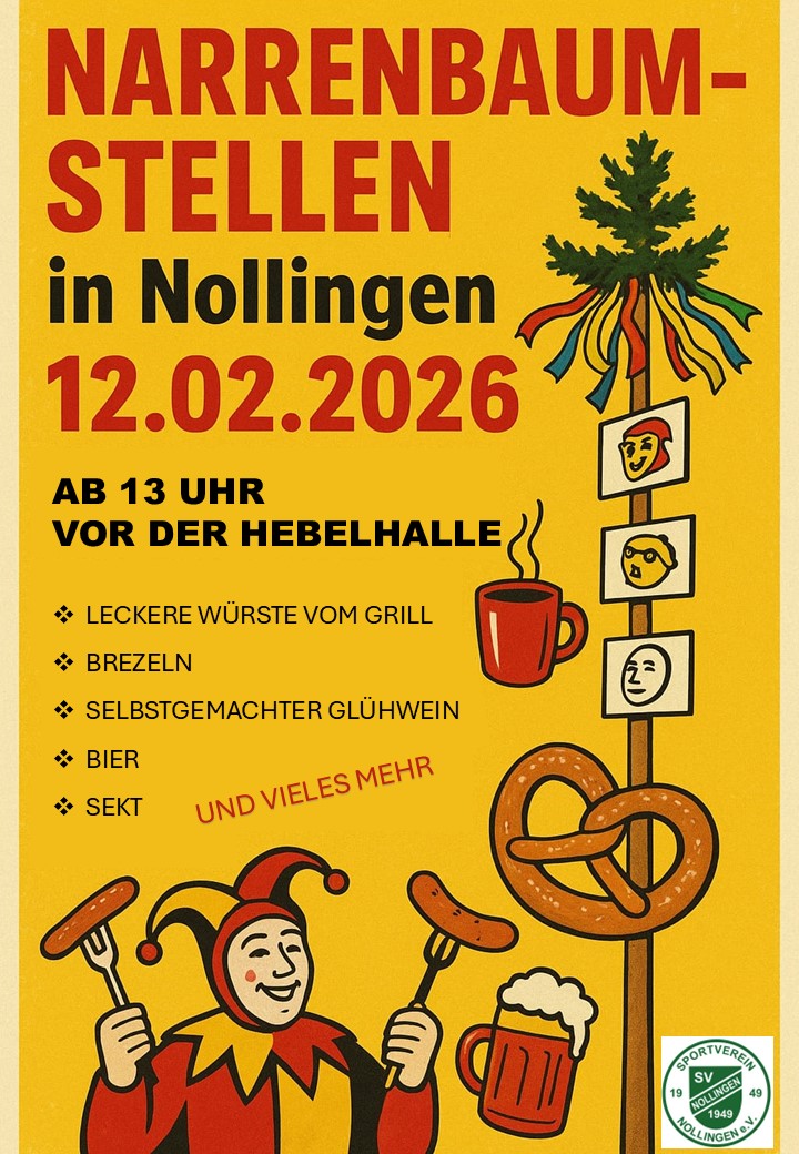Auch in diesem Jahr veranstaltet der SV Nollingen das Narrenbaumstellen an der Hebelhalle Nollingen.